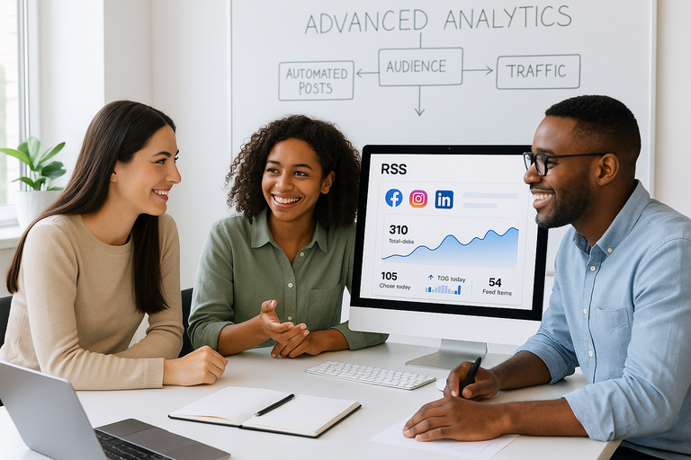 Economize tempo e nunca perca uma atualização: compartilhe instantaneamente os artigos, podcasts ou vídeos mais recentes de qualquer fonte RSS para Facebook, Instagram, X, Tiktok e muito mais-sem mãos e sempre dentro do cronograma.